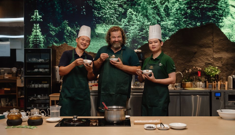 Z cesty si Josef přivezl inspiraci v podobě tradičního čínského dezertu – Tang Yuan. Jde o lepkavé knedlíčky z rýžové mouky, plněné sladkou sezamovou pastou a podávané v aromatickém jasmínovém čaji Ahmad Tea.